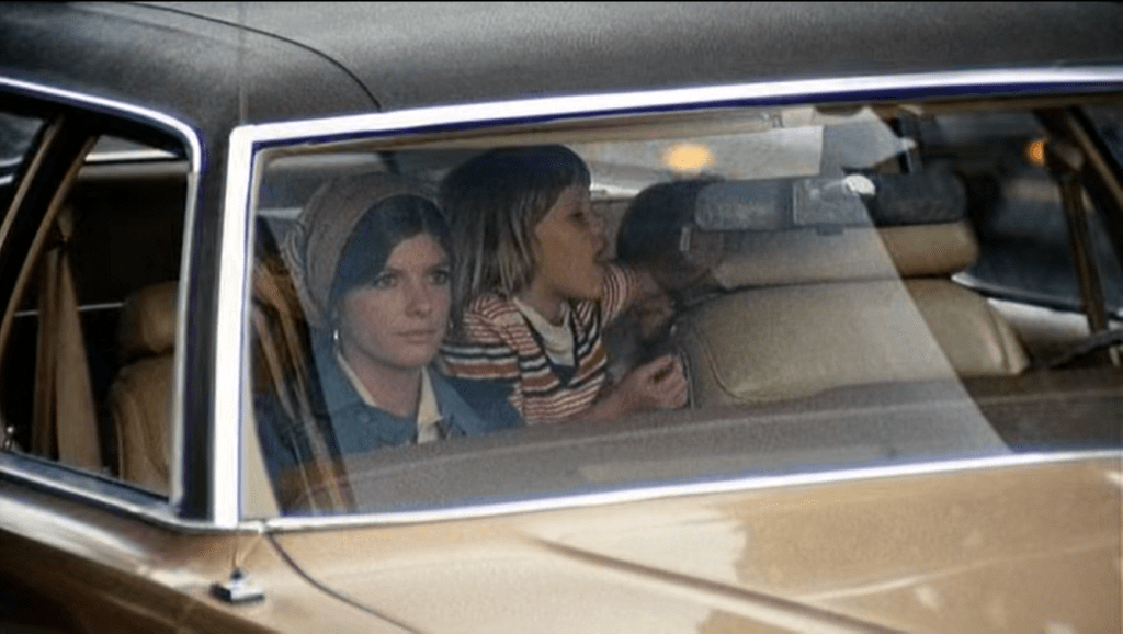Joanna waits for her husband, Walter, to join her and their children in their car before they move to STepford, Connecticut from their apartment in New York City.