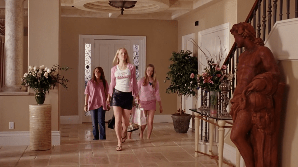 Regina George and The Plastics walking through the foyer of the George’s Mansion.