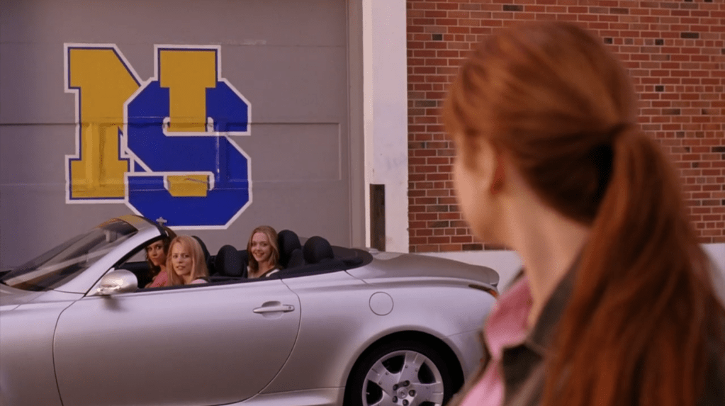 beauty standards, body image, cady heron, commodification, confinement, convertible, division of gender, girlhood, gretchen wieners, high school, karen smith, objectification, patriarchy, regina george, shopping trip, sports car, suburban, the plastics, wealthy