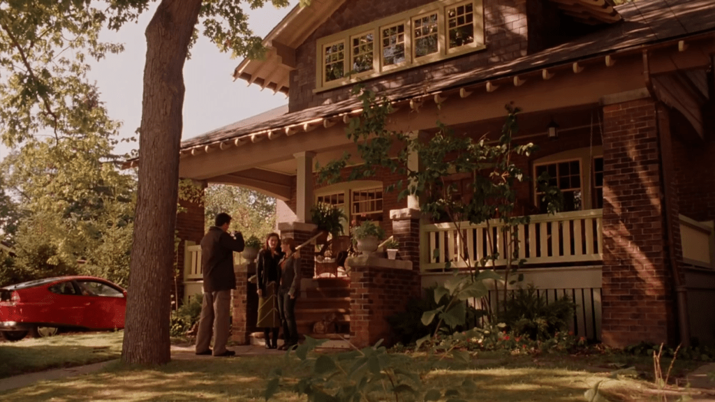 2000s, balustrade, Cady Heron’s House, chairs, columns, doorways, driveways, exterior threshold, front yard, Mean Girls, mullions, porches, stills, windows