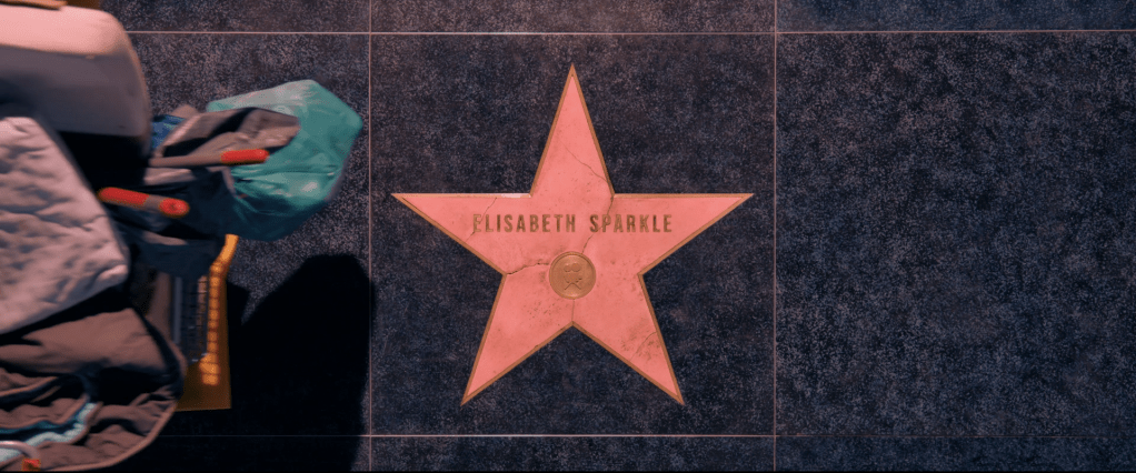 2020s, commodification, confinement, double framing, exterior threshold, Hollywood Walk of Fame, monuments, objectification, stills, The Substance