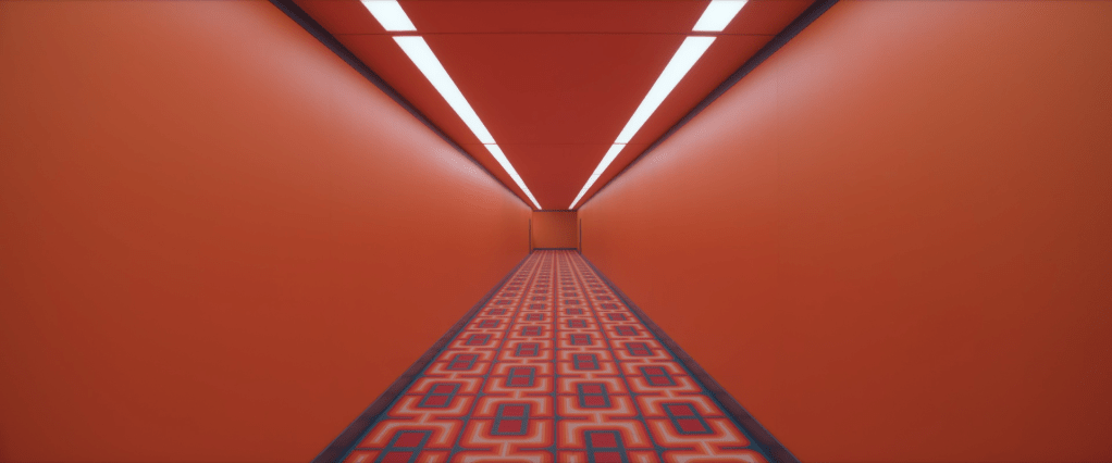 2020s, carpeting, commodification, confinement, hallway, hallways, objectification, Sparkle Your Life/Pump It Up Production Studio, stills, The Substance