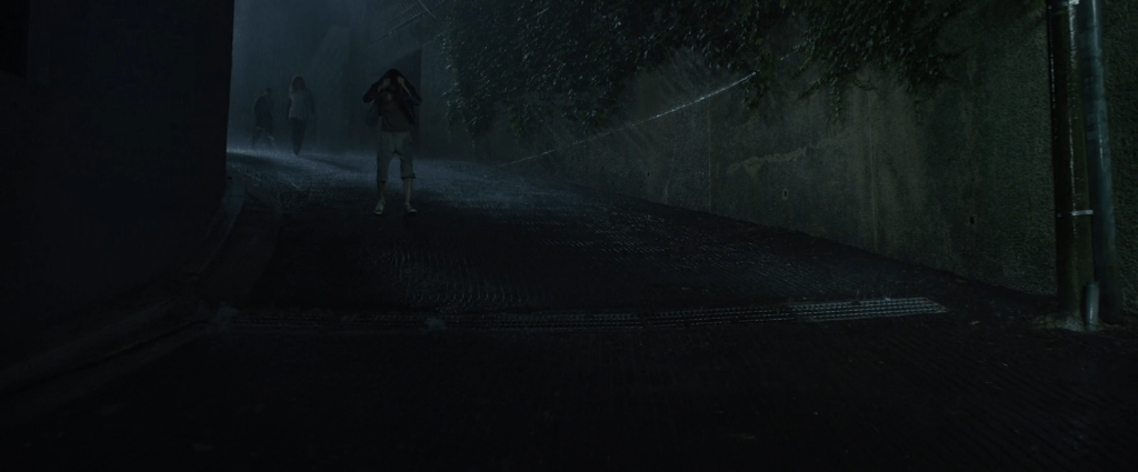 Entrance to Park Family’s Mansion; Kim Family escaping in the rain.
