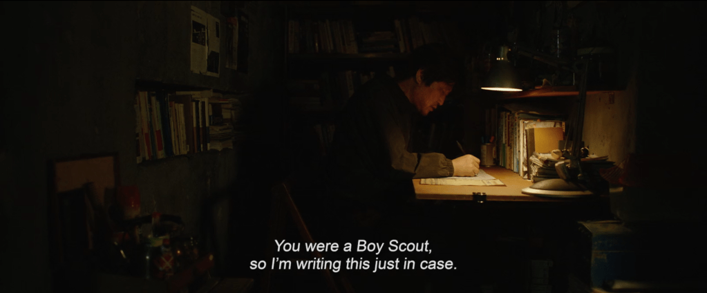 Ki-woo survives his injuries and discovers that he and his mother have been convicted of fraud upon regaining consciousness weeks after the birthday party. Ki-jung passed away and Ki-taek still has not been found. Ki-woo, now enlightened to the existence of the bunker, watches the Parks’ home after they move out hoping to find evidence that his father is still alive. He eventually observes morse code messages emanating from light fixtures in the house from his father, revealing that he has been hiding in the bunker since the events of Da-song’s birthday party. Ki-woo writes a letter to his father in response, promising to earn enough money to lift himself and his mother out of poverty through the purchase of the Parks’ old home, liberating his father in the process.