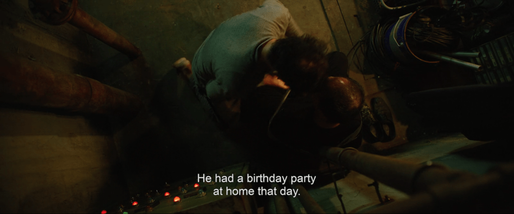 The following morning, Mrs. Park plans a surprise birthday party for Da-song to be held at their house, ordering Chung-sook and Ki-taek to work at the party and inviting Ki-woo and Ki-jung as guests. Upon returning to the Park residence, Ki-woo heads to the bunker to kill Geun-sae and Moon-gwang. He finds Moon-gwang already dead from the previous night’s injuries and is incapacitated by Geun-sae before he can kill him. Geun-sae emerges from the bunker and stabs Ki-jung in front of the party guests, leading Da-song to seize upon seeing the ‘ghost’ again. Chung-sook kills Geun-sae with a metal skewer while Mr. Park begs Ki-taek to rush Da-song to the hospital. As Mr. Park approaches Geun-sae, he holds his nose, provoking Ki-taek to kill him after remembering the comments Mr. Park made about his own scent the night before; Ki-taek escapes without a trace.