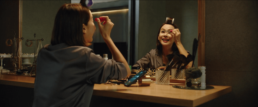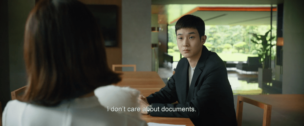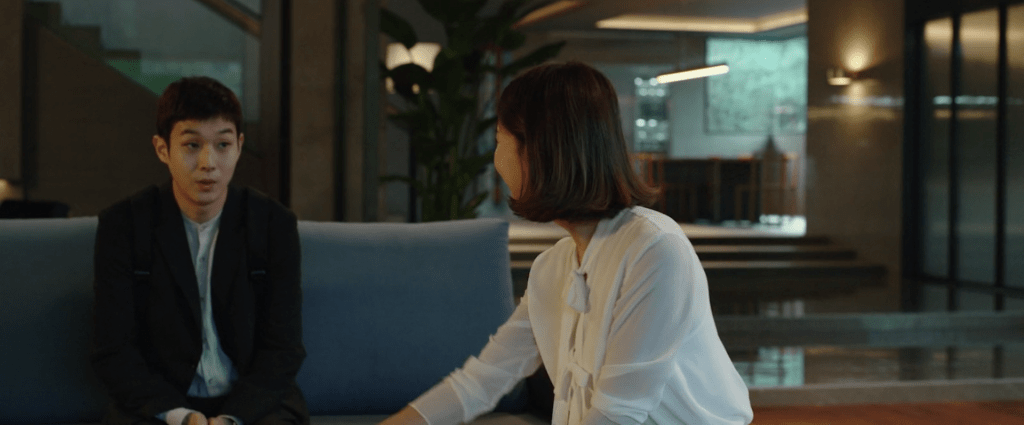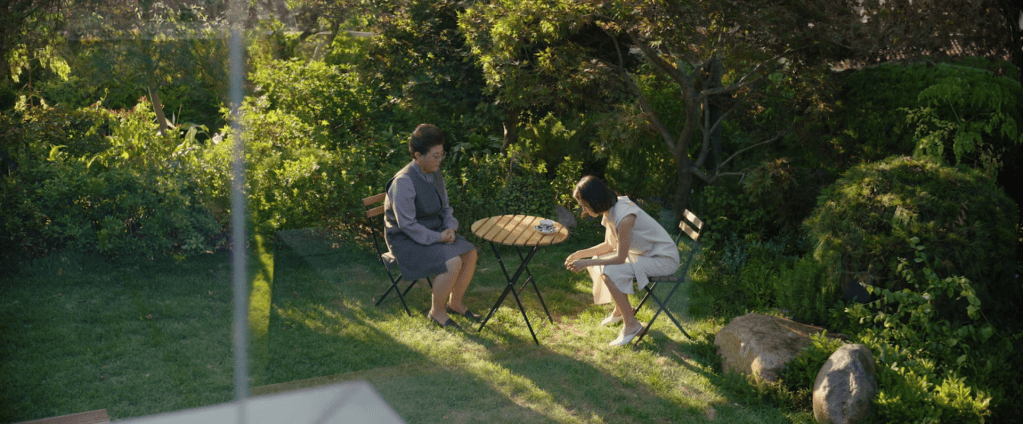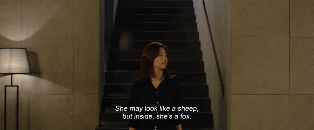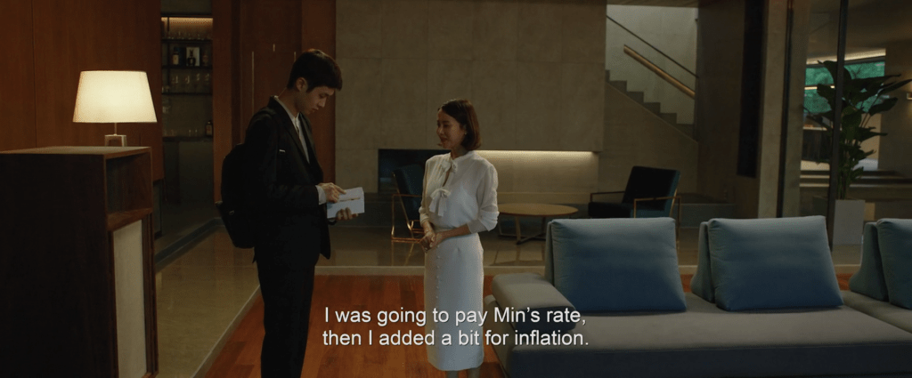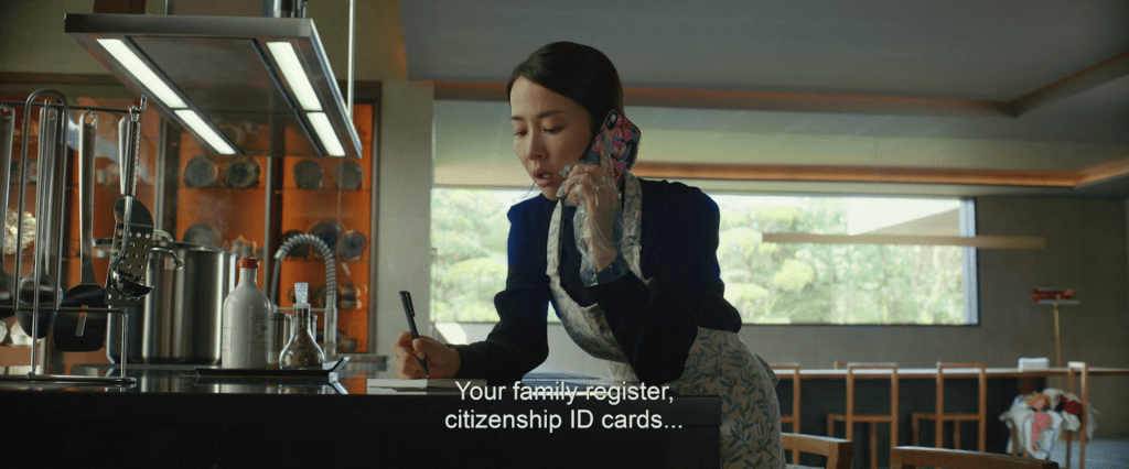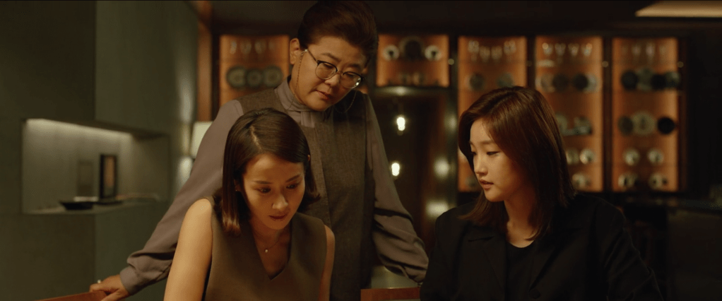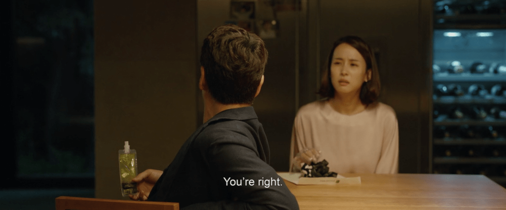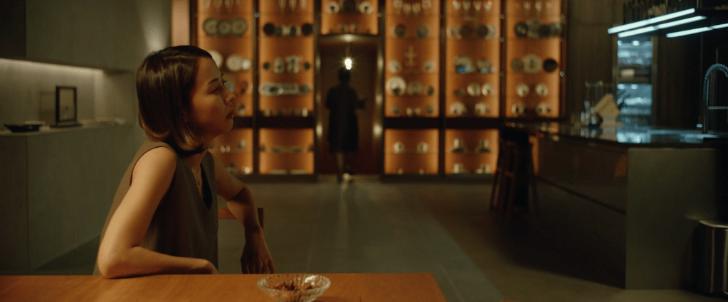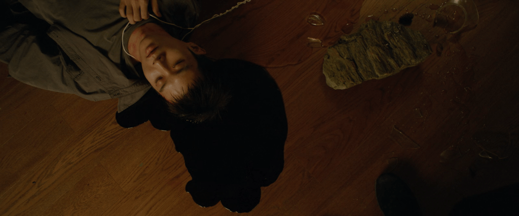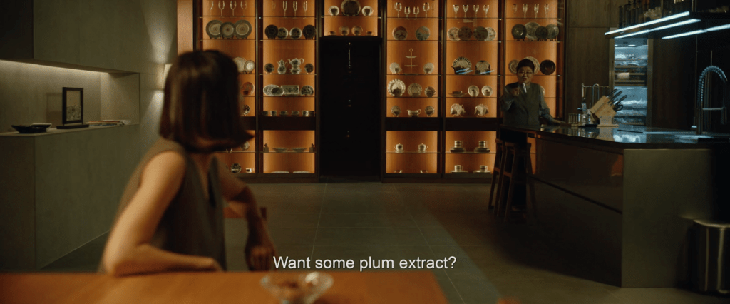 Chung-sook becomes an object within the threshold of her home, a woman and mother commodified by the wealthy and her own family as a way for them to escape from domestic labor themselves. Miranda Brady emphasizes that the delegitimization of motherhood as a profession deserving of a wage, a critique shared with the second wave of feminism, stems from capitalist structures which value laborers in industry over laborers who sustain human life[2], in this example mothers. Chung-sook and her family are victims of capitalist structures and the patriarchal ideology embedded within them. To support themselves financially, they seek employment outside of their home as domestic laborers for the Park family, but because of the devaluation of housework as a legitimate line of work, the Kims are unable to escape poverty and domestic labor at home, all of which is symbolized by the architectural framing of their bodies as imprisoned and constricted within the domestic realm.