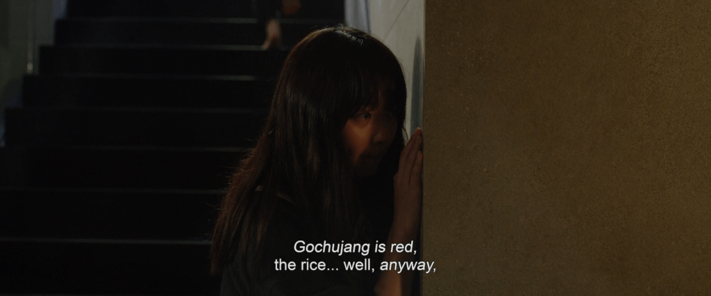 In Parasite, the architectural framing of bodies represents the oppression of the Kim Family under capitalist economic structures which restrict them to lives as domestic laborers in the home of their employer and in their own home. In this film, the definition of ‘feminine body’ extends to Ki-taek and Ki-woo because of their employment as domestic laborers, a profession historically reserved for women and gendered as feminine as discussed previously. In South Korea, “Girls and women aged 15 or older spent about two hours and 26 minutes on housework in 2019, about 3.6 times longer than men who devoted 41 minutes, according to the Seoul gender statistics report on residents’ work-life balance;”[1] Within the broad class commentary presented in Parasite lies an equally as important discussion about the gender disparity in housework responsibility, especially for women who are also employed as housekeepers of the upper class, and the capacity of architecture to symbolize this oppressive divide. Ki-taek and Chung-sook’s bodies are viewed through prison-like grates and slivers of compressed space in the film, framing their bodies as stuck and restricted to spaces in which they can perform domestic labor tasks.